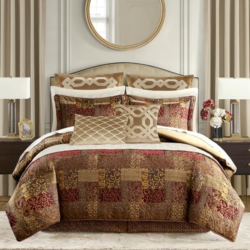Chezmoi Collection 7-delad Jacquard blommig täckeset (drottning, polyesterblandning, rödbrun/guld