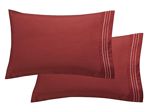 Elegant komfort lyxig ultramjuk 2-delat örngott set – 1 500 premium hotellkvalitet mikrofiber dubbel borstad – skrynkelbeständig, standard/drottning, vinröd