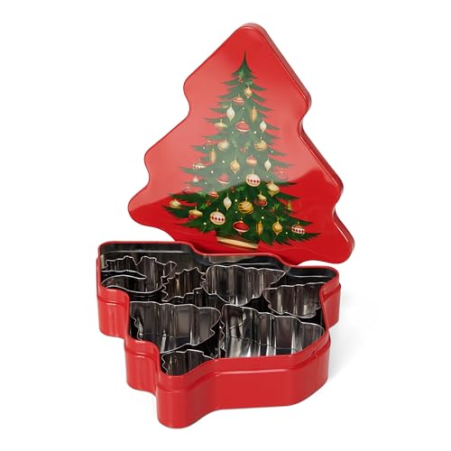 patisse 13728 - Kaklåda, metall, gran, med 7 kakskärare, rostfritt stål, 5 granar: 4cm/5 cm/6cm/7cm/8 cm, 1 ekorre 5 cm, 1 järnek blad 5 cm