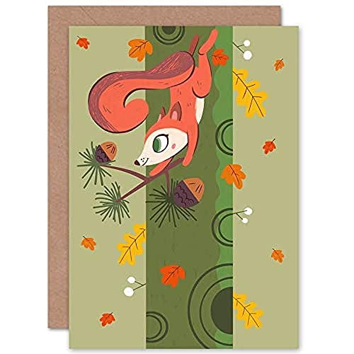 Wee Blue Coo Röd ekorre ekollon träd gratulationskort med kuvert inuti premiumkvalitet