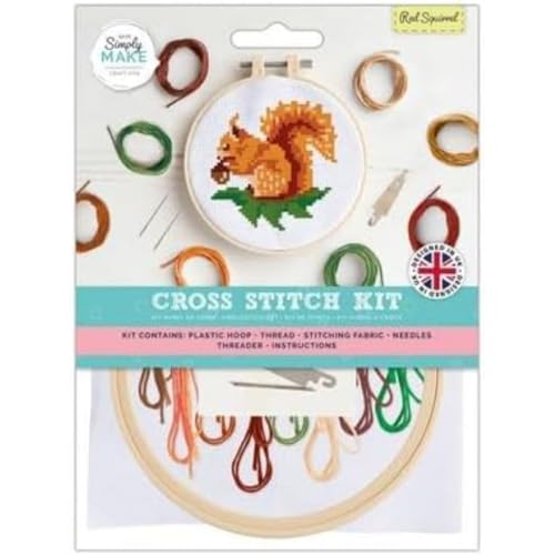 Helt enkelt göra korsstygnssats, konst- och hantverksset, djurtema, röd ekorre, 12,7 cm ring