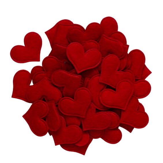 Filthjärtan, 48 st. söta röda hjärtan av filt, Ø4 cm