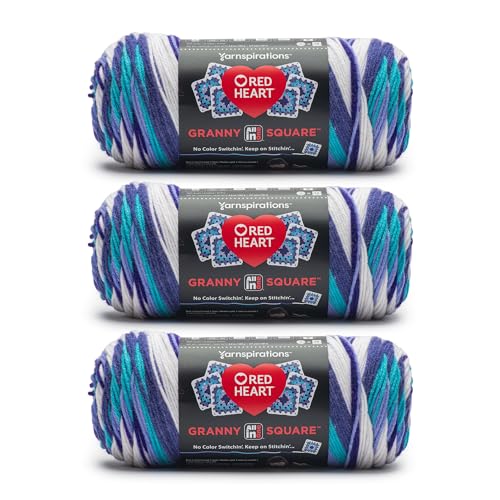 Rött hjärta allt-i-ett mormor fyrkant mjukt vitt – Frigid garn – 3-pack med 250 g/8,8 oz – 100% akryl – #4 kamgarn (medium) – 381 m/417 meter – för stickning, virkning och amigurumi