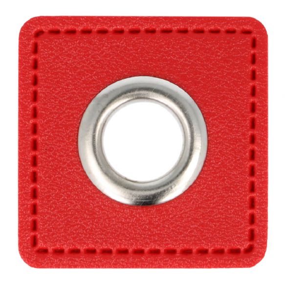 TH Läderlapp med öljett - Fyrkant, Röd 11mm