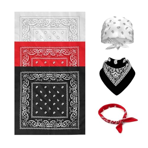 Domicubes 3 stycken herrhalsdukar, 54 x 54 cm Pirat Bandanas Paisley Färgade Sjalar Svart Röd Vit Unisex Halsduk Huvud Docka Vuxna Barn