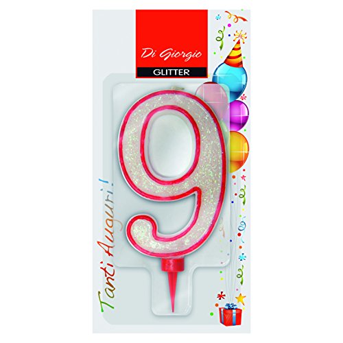 Cereria di Giorgio- Jätte Födelsedagstearinljus med Glitter nummer 9, 58170_69