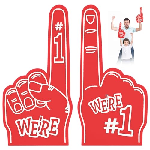 Aolso 2 x jätte skumfingrar, skumfingrar för händer, jätte skumfinger, sporttillbehör, skumhand för fester och evenemang, cheerleading (röd)