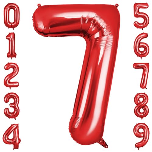OFFCUP Jätte nummerballong, röda folieballonger nummer "7", 101,6 cm, dekoration för barnfödelsedag, för pojke eller flicka, med "Grattis på födelsedagen"-klistermärke