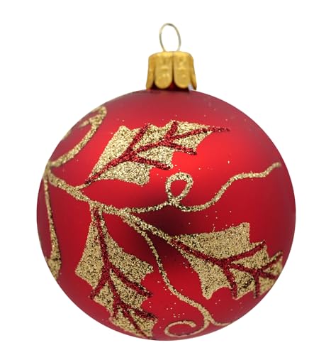 Ornex Prydnadsset (Ø 7 cm) i handblåst glas och dekorerat för julgran, röd, guld, 3 sfärer Ø 7 cm, 3 delar