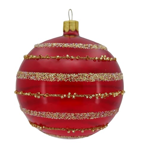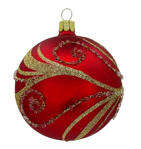 Ornex Prydnadsset (Ø 8 cm) i blåst glas och handdekorerade för julgran, röd, guld, 6 sfärer Ø 8 cm, 6 stycken