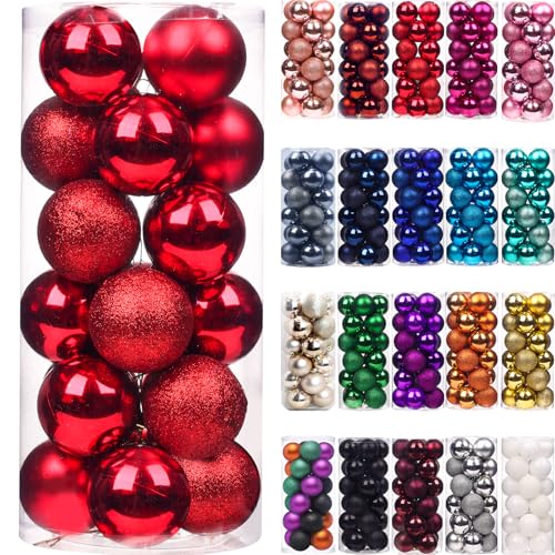 Emopeak 24 st julbollar prydnader för julgran - okrossbara julgransdekorationer stor hängande boll för semester bröllopsfest dekoration (röd, 3,1 cm - 3,1 cm)