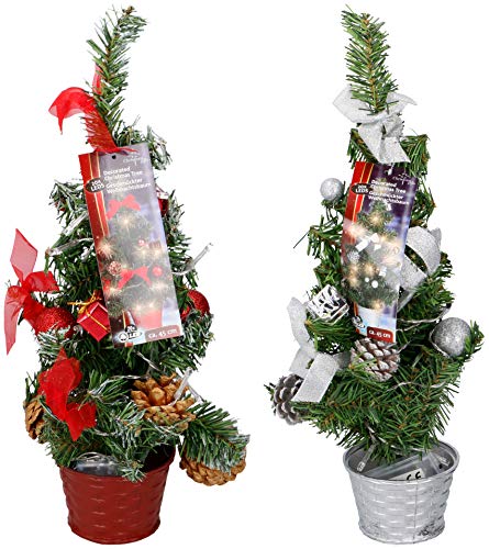 Julgran ca 45 cm, dekorerad med 20 x LED röd eller silver (silver)