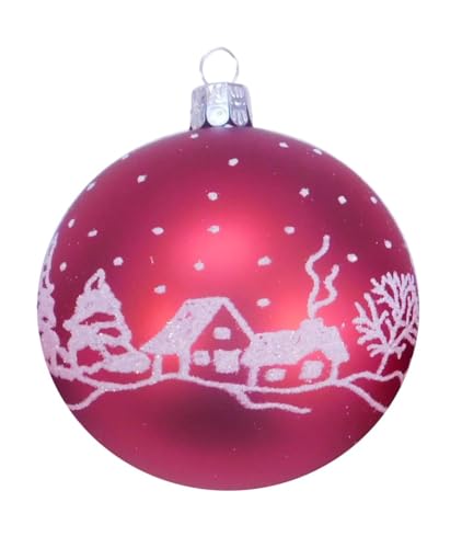 Ornex Prydnadsset (Ø 8 cm) i blåst glas och handdekorerat för julgran, röd, 3 sfärer Ø 8 cm, 3 delar