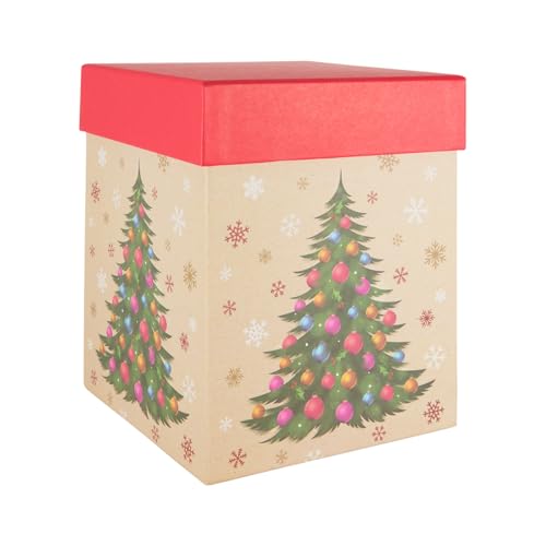 Idena 30508 – Presentbox med lock, storlek 18 x 18 x 22 cm, ask i brunt och rött med julgran