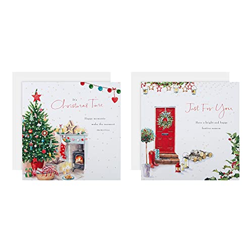 Hallmark Multipack julkort, välgörenhetskort, paket med 16 i 2 klassiska Lucy Cromwell designer, röd dörr, julgran