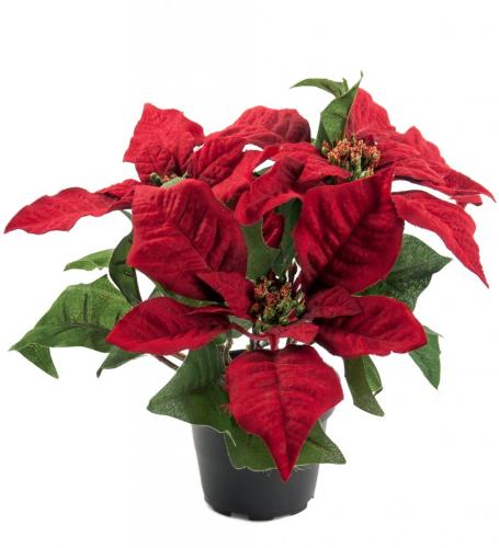 Leaf Konstgjord jul jul röd julstjärna 40 cm krukväxt i kruka