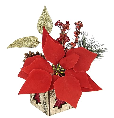 Konstgjord julstjärna, gran, bärkottar i kruka, poinsettia, julblomma, kristblomma, bordsdekoration, konstgjord blomma, konstgjord växt, julprydnad, dekorativ blomma, dekoration, juldekoration