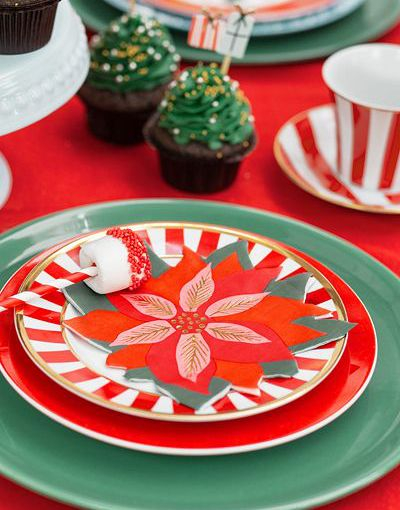 Elrene Home Fashions röd och vit julstjärna semester bordstablett set om 4, 33 cm x 48 cm, multi