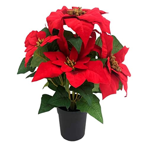 Greenbrokers Artificiell röd julstjärna julblomma växt i kruka 36 cm/14 tum
