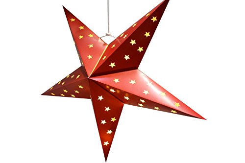 BRUBAKER LED Julstjärna att Hänga - 60 cm Pappersstjärna med 7 Spetsar - 3D Adventsstjärna - Batteridriven, Hängande och Upplyst - Fönsterdekoration Ljusstjärna - Röd