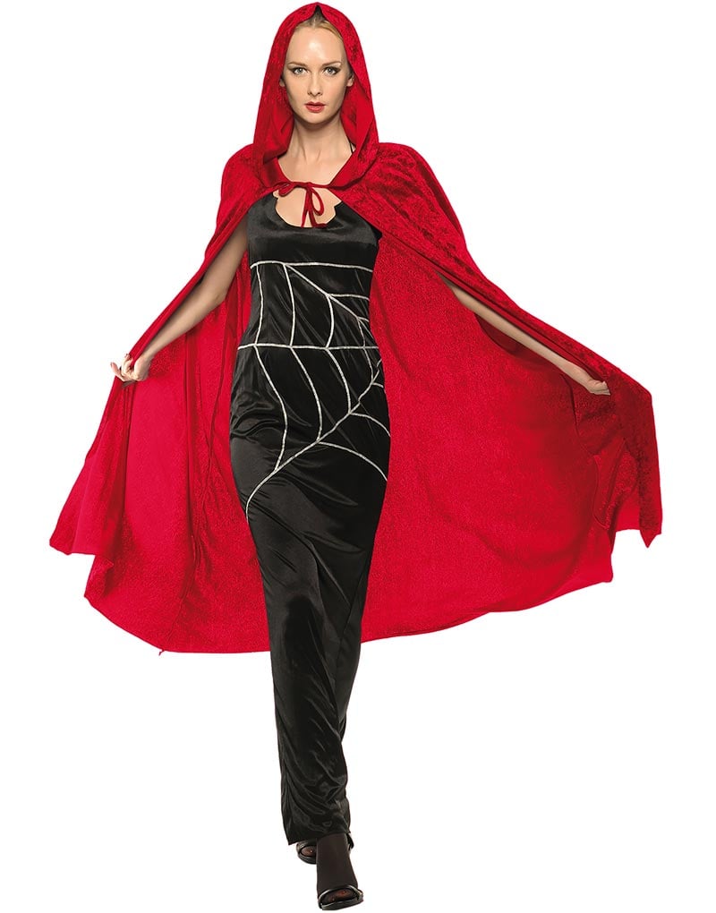 Fun Shack Röd cape vuxen kostym med huva - kort röd kappa för kvinnor, Halloween kostym
