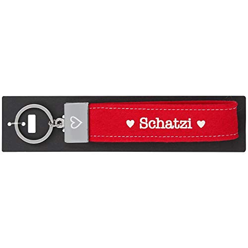 Djup 004298-118 slang nyckelhängare av filt, med graverad metallfinish och kulturellt tryck, katt, röd, ca 18,7 x 4,4 x 1 cm