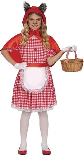 FIESTAS GUIRCA | Rödluvan för barn (10-12/år) - Kappa, förkläde och klänning - Berättelsedräkter för Halloween och kostymfester - Perfekt för flickor - röd och vit