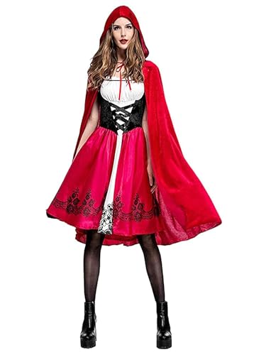 maxToonrain Liten röd ridhuva kostym kvinnor cape, halloween kostymer maskeraddräkt rolig röd valtt cape + världsbokdag cosplay kläder för kvinnor (lång, M)