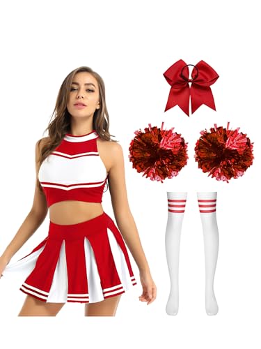 Doomiva Dam Cheerleaderin kostym set, karneval, danskostym set, cheerleading kostym, cheerleaderuniform halloween karneval danskläder set Xe röd B M