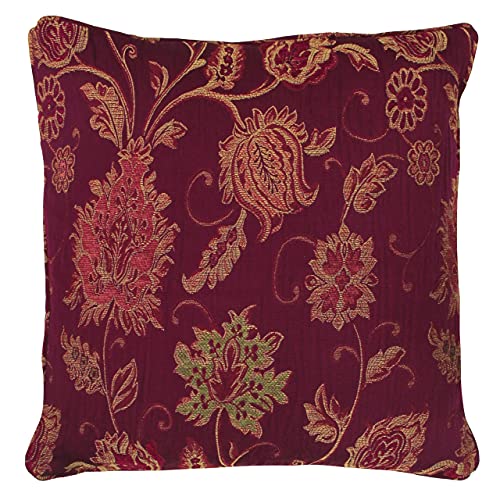 Riva Paoletti Zurich fylld kudde röd-dekorativ blommig jacquarddesign rörkanter – vändbar–100 fodral (18 tum x 18 tum) – Designad i Storbritannien, polyester, vinröd, 45 x 45 cm