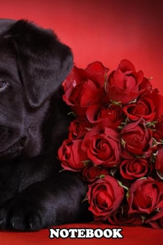 Notebook: Black Labrador Retriever Puppy With Red Roses, Journal for Writing, College Ruled Size 6" x 9", 110 Pages