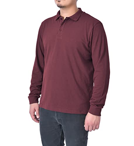 M17 Klassisk vanlig poloskjorta för män långärmad bomull Tee topp sport vardagligt arbete, Bourgogne röd, S