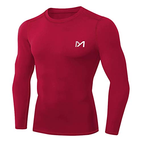 MEETYOO Kompressionsskjorta för män, baslager topp långärmad t-shirt sportutrustning fitness tights för löpning gym träning, Röd-1, L