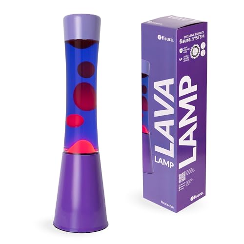 Fisura – Lila och röd lavalampa. Bas och glas med lila toning, röd lava. Avkopplande effekt. Inkluderar extra glödlampa. Mått: 11 cm x 11 cm x 41,5 cm.