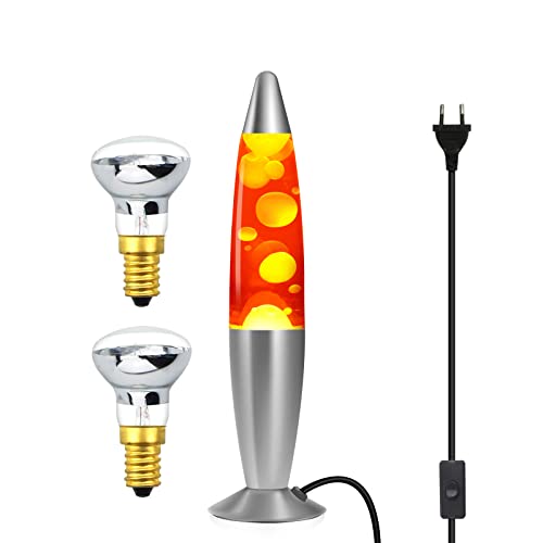DoRight Lava lampa gul vax/röd lavalampa flytande aluminium lugnande rörelse lava lampa för lugn avslappning, 13,38 tum, med 2-pack R39 25 W E14 Lava lampa glödlampa, AC 220-240 V