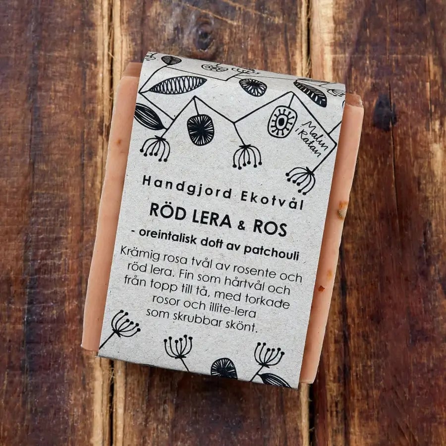 Malin i Ratan, Ekotvål Röd lera & Ros - orientalisk doft av patchouli