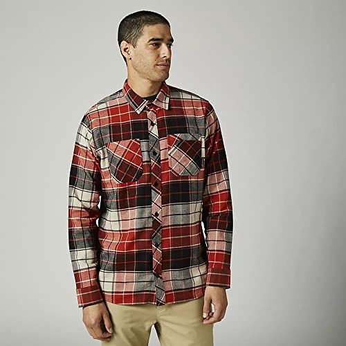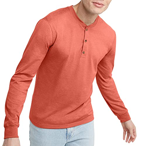 Hanes Originals-långärmad bomullströja herr T-shirt utan krage, Röd lera, S