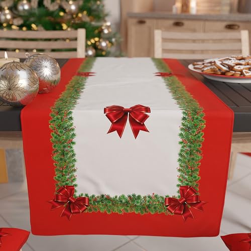 PETTI Artigiani italiani - Julbordslöpare, jullöpare, kökslöpare 140 x 40 cm, elegant jul löpare röd rosett, 100 % tillverkad i Itay