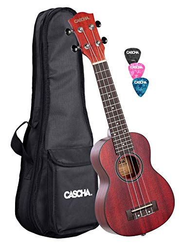 Cascha Sopran ukulele röd mahogny I ukulele starter kit 3 färgade plektrum väska Gigbag I Sopran ukulele premium mahogny röd I liten Hawaii gitarr för nybörjare avancerad