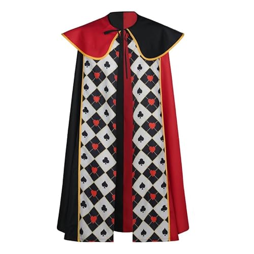CAMDOM Queen of Hearts kostym cape, röd och svart spelkortsmönster, halloween cosplay mantel, röd, en storlek, Röd, One Size