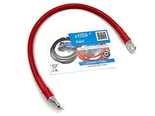 Exoda Kabel 50 mm² 50cm med krympslang och M8 kabelskor röd för bilar motorcyklar och båtar 99 procent rent koppar hög materialkvalitet H07VK mantel upp till 70°