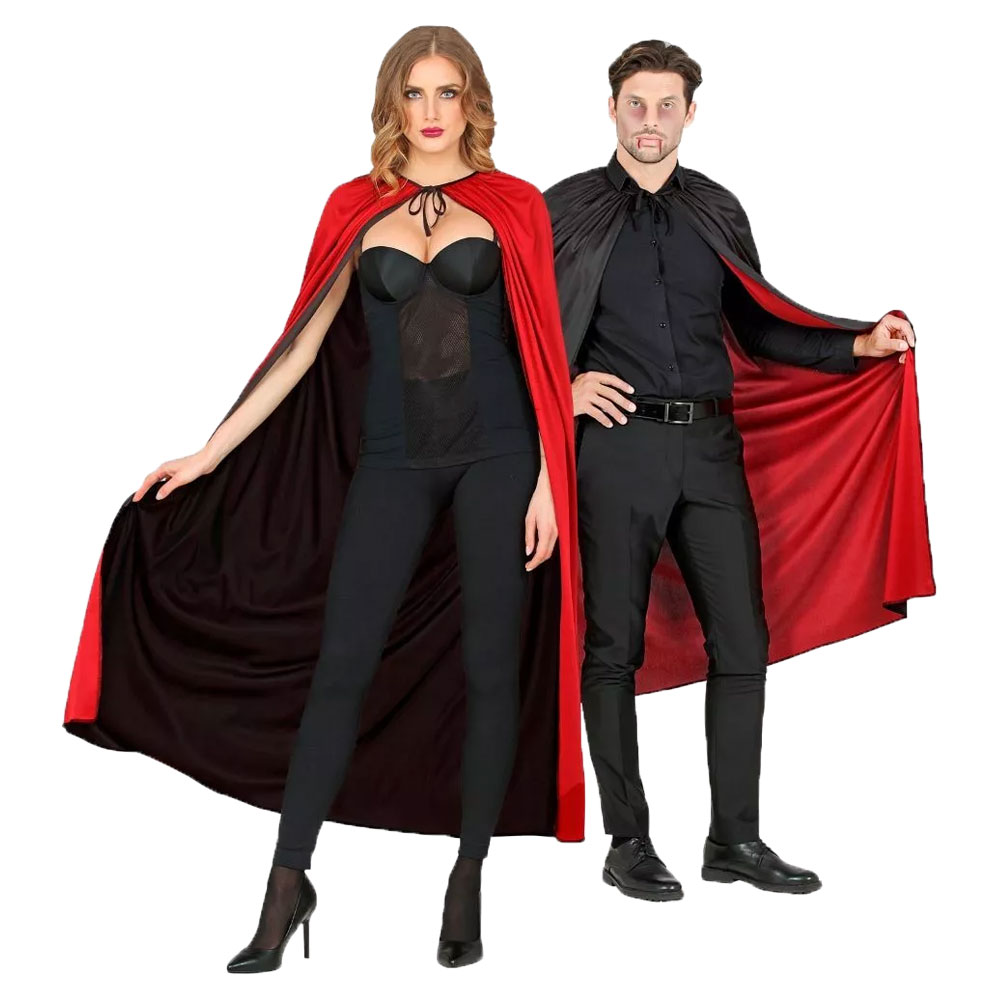 Tkocisa 140 cm Halloween Vampyr kostym cosplay Mantel Cape rekvisita, Dracula djävul mantel svart röd vändbar vampyr pirat cape för män och kvinnor
