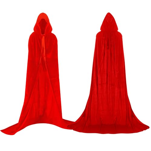 Proumhang Huva Mantel Full Längd Sammetshängare Vampyr Kappa Vuxen Cape Cosplay Halloween Röd