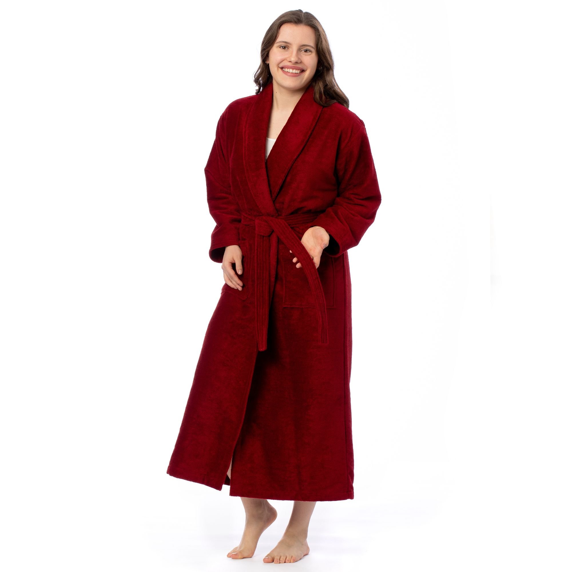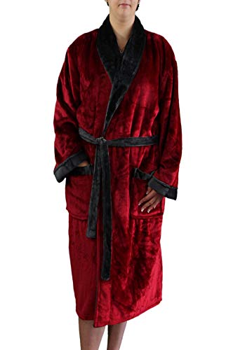 Gözze – unisex badrock/morgonrock med sjalkrage, sidenkänsla, 100% mikrofiber, 330 g/m², storlek XL – röd