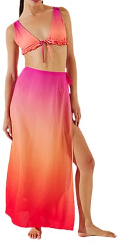 Karl Lagerfeld, tryckt slips maxi pareo, röd, kvinnor, strandkläder, Ombre Hibiscus – Carmelia, M