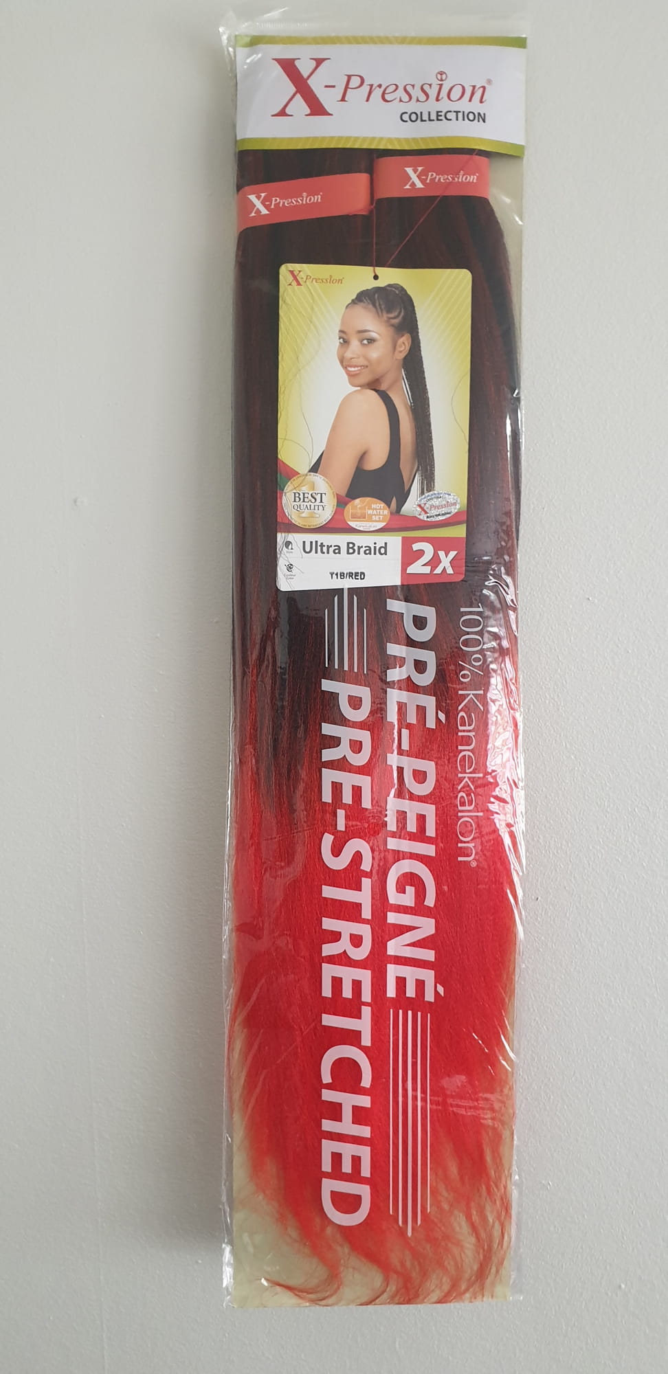 6 förpackningar 60 cm (24 tum) ombre flätat hår, flätade jumbohårförlängningar, långa jumboflätor för box-flätning, virkning, högtemperatur-konstfiber, enfärgade (svart/vinröd/röd)