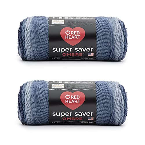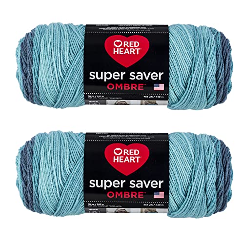 Red Heart Super Saver Jumbo Garn, 2-pack med 283 g, akryl, mediumgarn i viktklass 4 (worsted-garn), 441 meter, för stickning/virkning, blå ombré (Blue Tiful Ombre)