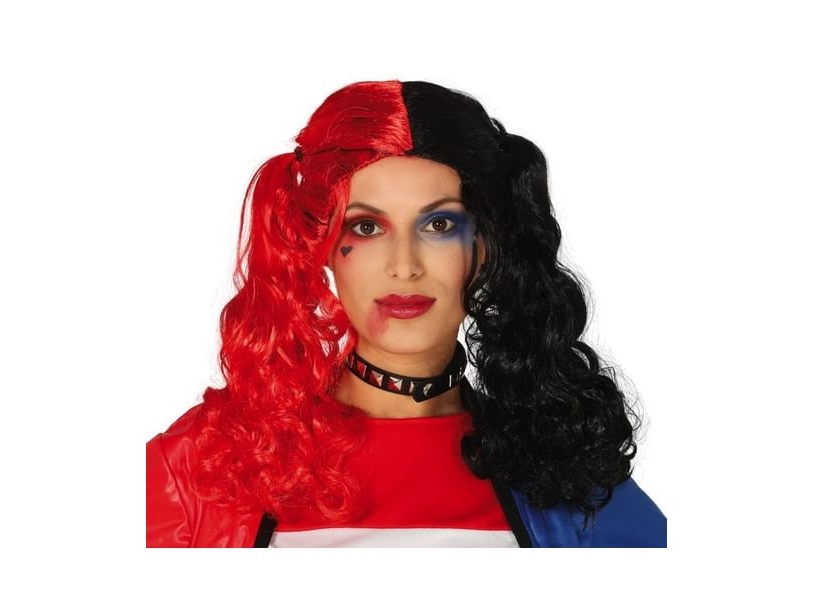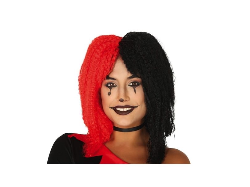 Harlequin Svart/Röd Deluxe Peruk One size