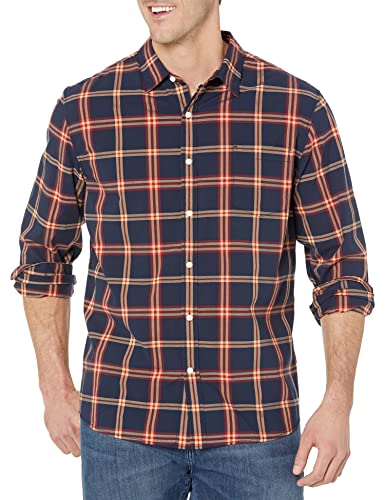 Amazon Essentials långärmad stretch-poplin-tröja för män, marinblå röd pläd, Large