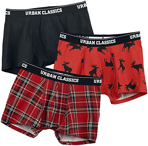 Urban Classics Boxershorts för män, snowman julboxer, 3-pack julkalsonger för män, storlekar S – 5XL, Röd pläd aop + moose ap + blk, 3XL